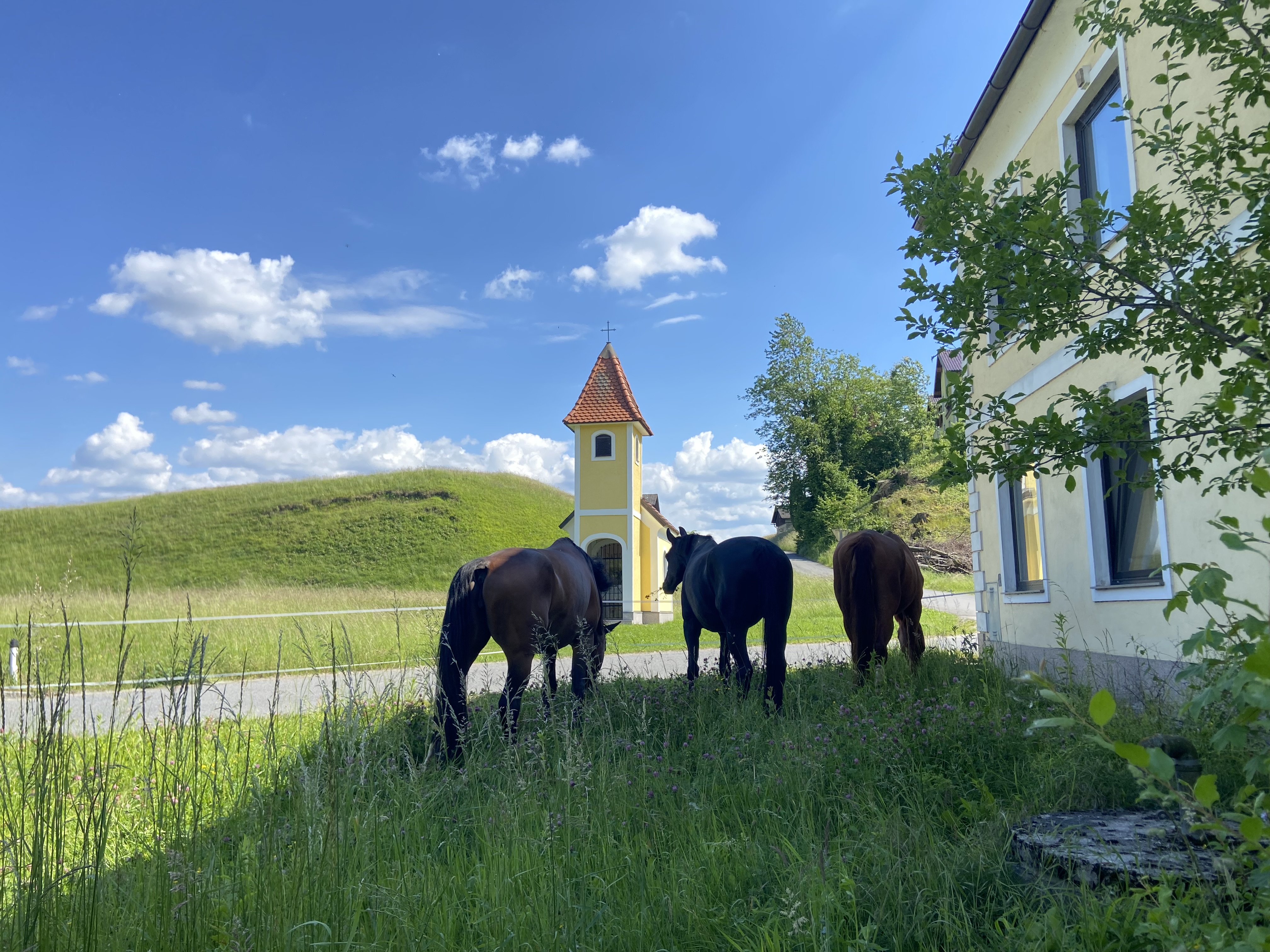 Wir leben MIT unseren Pferden – ihr Verhalten, ihre Bedürfnisse und ihre Sprache begleiten unseren Alltag. Dieses direkte Miterleben verbindet sich mit kontinuierlicher Weiterbildung, damit wir unser Wissen stetig vertiefen und erweitern können. Manchmal erfordern gute Lösungen Kreativität oder unkonventionelle Wege – entscheidend ist für uns immer das Ergebnis im Sinne des Pferdes.